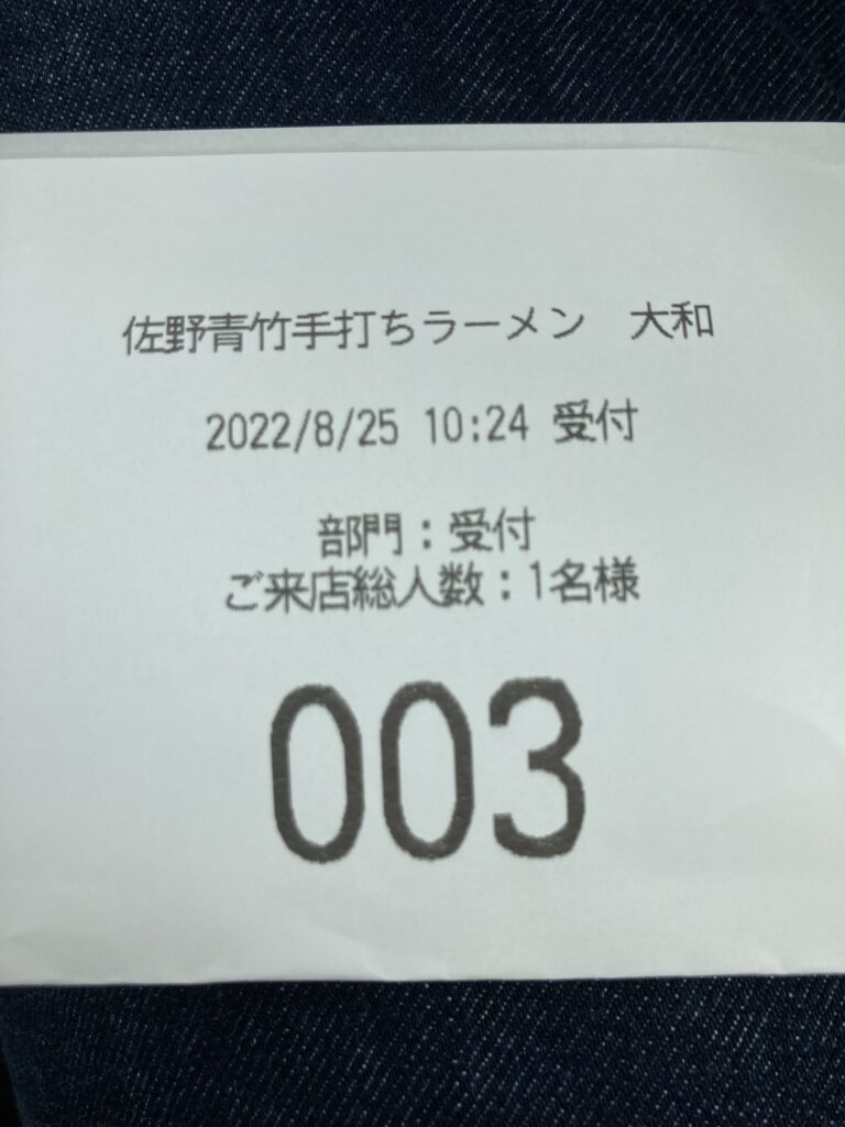 車の中で少し休憩し、受付をしに入り口へ。開店前に機械で受付票を印字し、食券を購入して店員さんに手渡し、あとは11:00開店まで自由に待機という流れになります。
